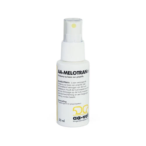 Das Melotran Hautspray von AA-Vet ist ein Hautpflegespray. Es enthält Honig und ätherische Öle. Honig hat eine beruhigende Wirkung und unterstützt die Regeneration der Haut. Die ätherischen Öle halten die Haut geschmeidig. Das Spray bildet eine dünne Filmschicht auf der Haut. Dies gewährleistet optimalen Schutz und eine lang anhaltende Wirkung.