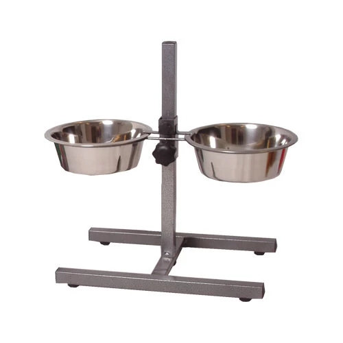 Ständer mit Trink- und Futternapf, Durchmesser entweder 17 oder 21 cm.