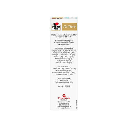 Doppelherz Gelenk Öl Omega-3 für Katzen und Hunde ist ein reichhaltiges, gut schmeckendes Öl zur Unterstützung für die Gelenke von Katzen und Hunden bei Osteoarthrose.