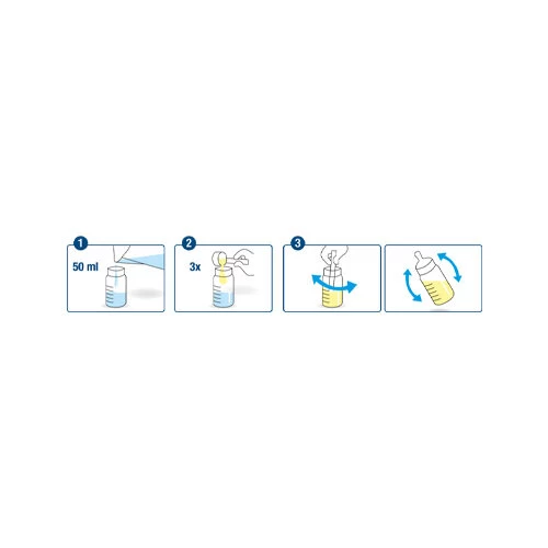 Milch und Milcherzeugnisse (69,3%, davon 26% getrocknete Ziegenmilch), Öle und Fette (enthält Algenöl aus Schyzochytrium limacinum mit 0,4% Arachidonsäure und 0,015% DHA), Zucker, Derivate pflanzlichen Ursprungs, Fructo-Oligosaccharide (1%)
