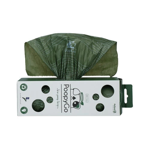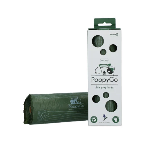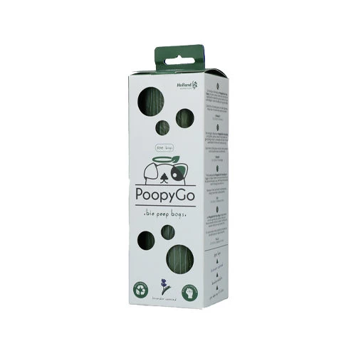 Eine handliche, mit Kackbeuteln gefüllte Taschentuchbox. Mit den Hundekotbeuteln von PoopyGo sind Sie gut für die Umwelt! Die Taschen sind biologisch abbaubar, so dass Sie zu einer saubereren und grüneren Welt beitragen. Bei biologisch nicht abbaubaren Standardtaschen kann es 10 bis 500 Jahre dauern, bis sie abgebaut sind, die Taschen von PoopyGo sind bereits nach 18 bis 36 Monaten von Natur aus abgebaut. Darüber hinaus sind die Beutel größer, stärker, einfacher zu verwenden und haben einen schönen frischen Lavendelduft. Die beste Wahl für Sie und die Umwelt!