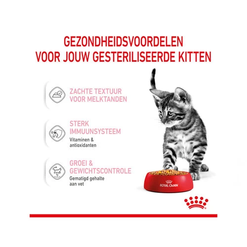Kitten Sterilised von Royal Canin wurde speziell für kürzlich sterilisierte oder kastrierte Kätzchen entwickelt. Nach dieser Prozedur wird jetzt der gesamte Hormonhaushalt Ihres Kätzchens ein wenig in Schwung gebracht. Das Nassfutter in Gelee mit optimaler Textur und Geschmack hilft Ihnen, das gesunde Wachstum und die Gewichtskontrolle Ihres Kätzchens wieder in den Griff zu bekommen. Zusätzlich dazu kann man sagen, dass dieses Futter die natürlichen Abwehrkräfte und die Verdauung unterstützt. Das Nassfutter enthält weniger Fett, um das Risiko einer Gewichtszunahme zu verringern. Es enthält aber optimale Mengen an Eiweiß, Kalzium und Phosphor für eine gesunde Entwicklung.