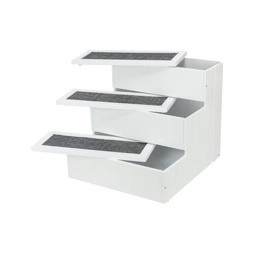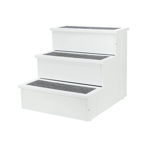 Wenn Sie Ihrem Haustier helfen wollen, auf das Bett oder Sofa zu klettern, können Sie dafür diese Treppe von Trixie nehmen. Auch für Tiere mit Gelenkproblemen ist die Treppe eine große Hilfe, da sie nicht mehr springen müssen. Die Treppe ist mit Teppich ausgelegt, um den Halt zu verbessern. Sie hat abnehmbare Stufen, damit man sie auch als Stauraum nutzen kann.