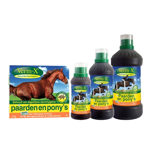 Verm-X ist ein Kräuterpräparat in Form von Brocken, Pulver oder einer Flüssigkeit für Pferde, Ponys und Esel. Die Kräuter in Verm-X unterstützen eine gesunde Funktion des Darmszstems. Dieses Futterergänzungsmittel ist leicht zu verabreichen.